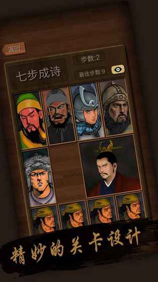 华容道iOS版是一款传统经典免费益智滑块游戏通过移动各个棋子,玩家帮助曹操从初始位置移到棋盘最下方中部,从出口逃走。不允许跨越棋子,还要设法用最少的步数把曹操移到出口。曹操逃出华容道的最大障碍是关羽,关羽立马华容道,一夫当关,万夫莫开。