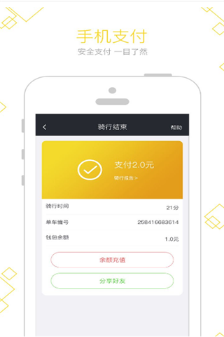 2、关锁即还,方便快捷。停车后手动合上车锁,即完成还车,结束计费。
