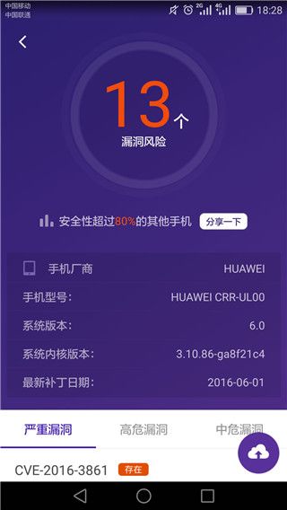 3.帮助安卓用户检测手机安全漏洞,监测手机系统环境状态,以便用户及手机厂商提前采取相应的安全防护措施;