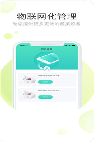 2.硬件连接功能:通过蓝牙与网络实现新氧提供的IOT医疗美容设备与app的连接。