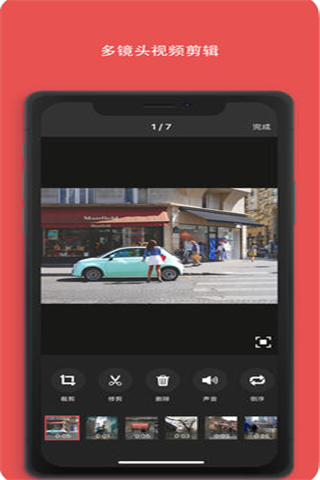5.多镜头剪辑:裁剪视频尺寸,反转视频,剪辑视频,调整不同镜头的顺序等多个强大的编辑工具,让你轻松剪辑多段视频,生成蒙太奇效果,合成一部完整的影片
