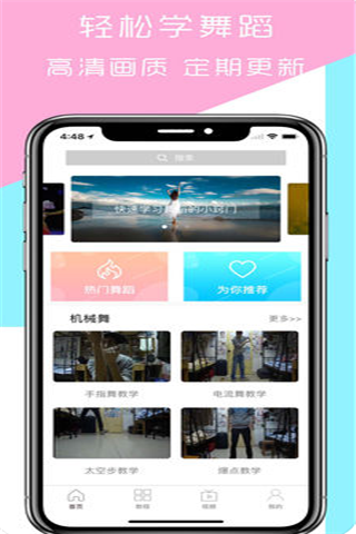 2.你想要瘦身塑形还是修炼气质?无论你想要什么,这里都能满足你。专业真人教学,丰富舞种分类,易学的舞姿技巧,零基础你也可以成为最美舞者!