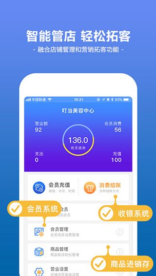 帮助你轻松管理店铺,提供了会员管理、收银记录、进销存等多项功能