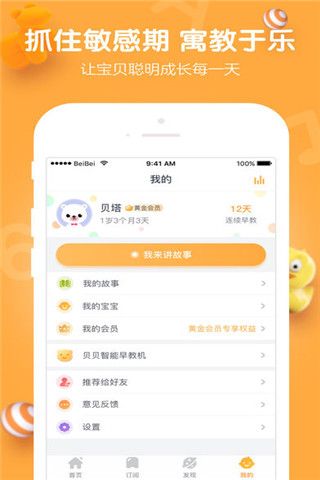 1、贝贝早教宝依托蒙台梭利九大敏感期理论,精选百万套适合0-12岁孩子在线学习的儿歌童谣、睡前故事、儿童英语、传统国学、幼小衔接课程等音频&视频内容。