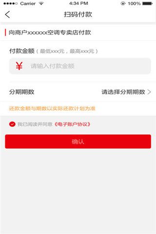 3、在指定商户消费,即可使用预授信额度进行分期贷款。