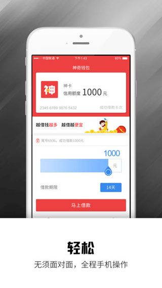 神奇钱包iOS版是一款手机在线贷款钱包软件,专注于为都市白领与蓝领提供纯信用无抵**额借款服务。最快10分钟放款,7-30天灵活周期,500-3000额度。神奇钱包,急您所急!