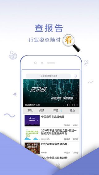 店讯报iOS版是一个营销数据商城,此应用针对各种行业,大中小型企业的管理者而设计。假如您是一位管理者,您想了解相关的行业信息,可通过我们定期推送的相关数据报告来了解。若推送的报告中没有您想了解的信息,您也可通过此应用一键发布需求。