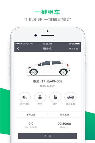 3、短时短途出行租车神器,特别是去机场、园区、校园、CBD 4、网点分布多,24小时网点就在你身边,任意网点自助取还