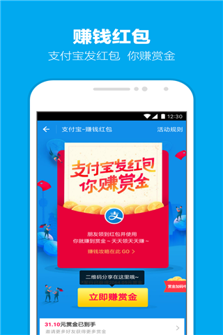 1.「赚钱红包」加量派送!现在扫码领红包,马上加送商超专享红包!上万家商场、超市、便利店、售货机,都能抵扣现金!记得每天和好友互相扫码领取哦。