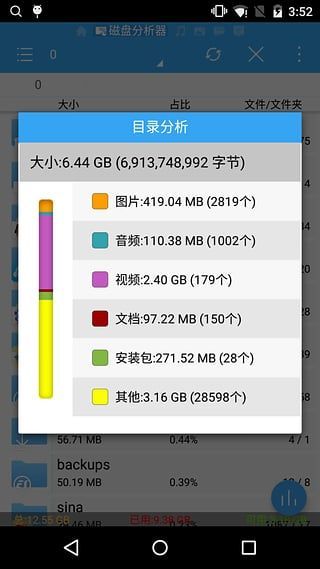 7、ES还可以卸载软件,用户可查看到所以安装在设备上的应用程序,长按住一款应用程序,用户可以对看到弹出的菜单中有卸载的功能,当然还可以对该软件进行备份或设置快捷方式等。