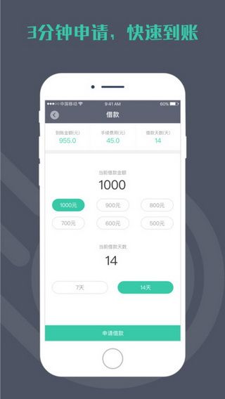 2、借款简单:5分钟3步快速申请,10分钟快速审核,当天放款,快速到账!