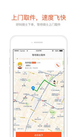 呼叫骑士下单,等待骑士上门取件!