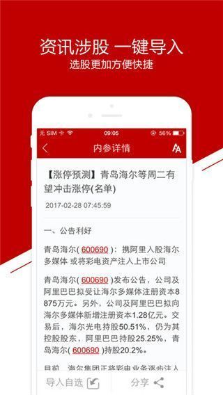 3、资讯涉股,一键导入,选股更加方便快捷;