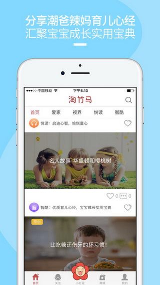 淘竹马iOS版是一款母婴早教互动分享的内容社圈平台,关注宝宝成长宝典,网罗经验宝妈精彩育儿分享。淘竹马精选全球母婴好货,只给您最优最合适的。构建新时期更加亲密和谐的亲子关系,助力孩子健康成长。