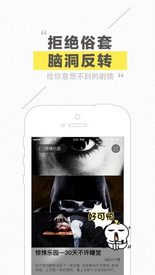 4.故事分享入口,与朋友分享阅读的刺激与乐趣。