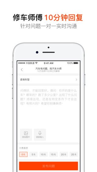 2、修车师傅,十分钟回复,针对问题一对一实时沟通;