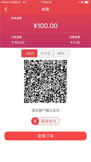 4.APP收银即商户通过e商户APP进行收款,商户扫客户、客户扫商户都是支持的;