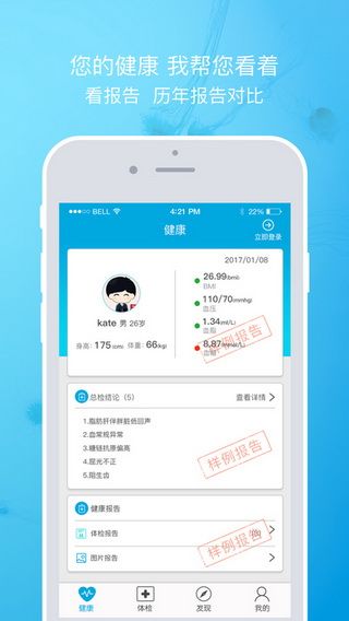 1.您的健康 我帮您看看 看报告 历年报告对比