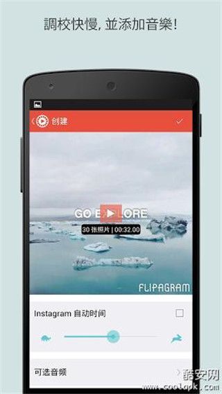 5.“对 Instagram 的自动时间” - 神奇地调整Flipagram 的尺寸,令其可在 Instagram 完美发布;