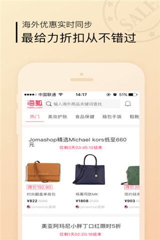 海狐海淘iOS版是一款海外代购应用,这里为大家提供全面实用的商品资源,由多种知名平台提供货源,数万款热卖商品,底价出售,由淘粉吧团队精心打造。帮助大家轻松进行购物,海外直邮,正品保证哦。海淘时尚达人的必备神器,