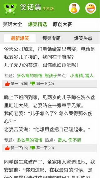 笑话集IOS版是一款为广大用户提供欢声笑语的软件,这里收集了网络中各种别开生面的笑话,一开头就根本停不下来的那种,笑话大全乐翻天、开心每一天!