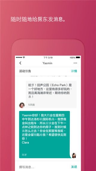 2、国外旅行更加自由,可选择民宿居住,随时随地都可与房东在线沟通;