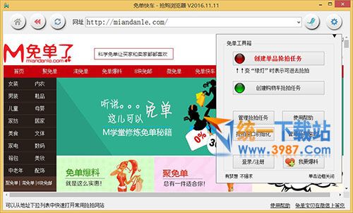 免单快车2017(聚划算淘抢购抢拍器) v11.11 官方版软件大小:73.28MB