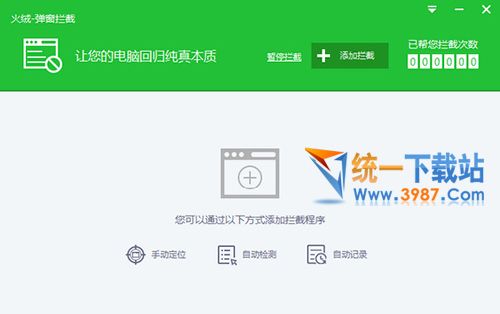 可能以通过手动定位、自动检测、自动记录来添加拦截程序。实时显示拦截次数。
