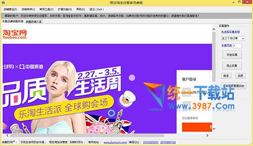 悟空淘宝店管家软件是一款集采集淘宝店销售数据,统计,进销库存管理,打印一体的综合ERP软件,软件一键采集淘宝店宝贝销售数据,真是省时省力省钱的淘宝店铺好帮手.......