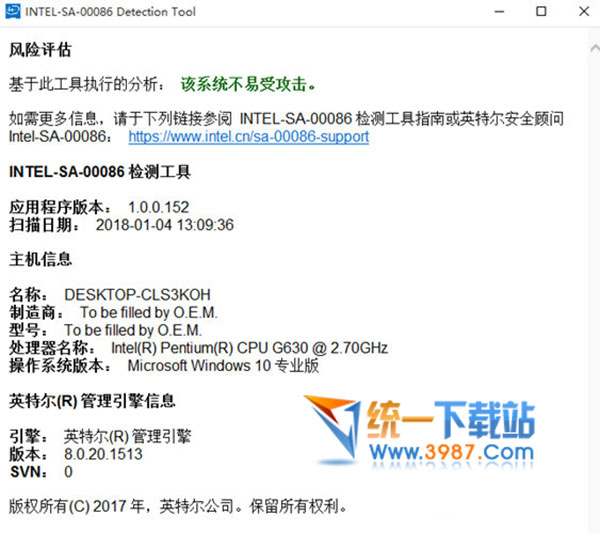 英特尔发布的检测工具只能帮你检测设备是否受到漏洞的影响,但该工具并不能帮你直接更新或者修复漏洞。