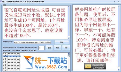 菱飞百度短网址生成器解决网址推广时被屏蔽问题。可以支持任意网址缩短为短网址,淘宝网址或淘宝客网址缩短为淘宝短网址或淘宝客短网址尤为重要,方便推广。