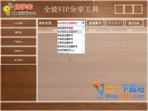 全能vip分享工具是一款集合了多个vip账号收集功能于一体的账号分享工具。本工具功能强大,能够自动采集网上vip分享网站分享的vip账号,包含:爱奇艺vip账号、迅雷vip账号、土豆vip账号、优酷vip账号、乐视vip账号等。