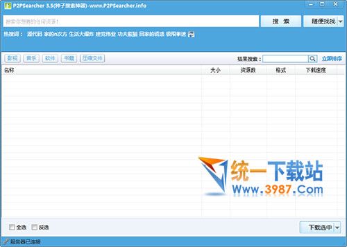 p2p万能搜索器2015是一款种子搜索神器,大家可以使用P2pSearcher搜索大量的影片、图片、音乐等资源,而且还能搜到电驴内那些被屏蔽的资源哦,欢迎大家下载使用。