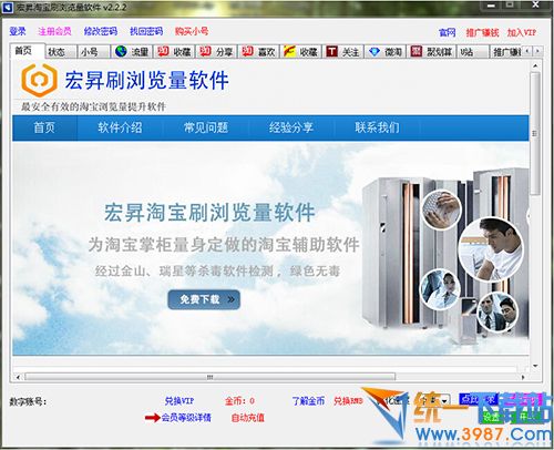 宏昇淘宝刷浏览量软件注册就送积分,软件永久免费使用,用户通过软件互相刷淘宝宝贝浏览量。