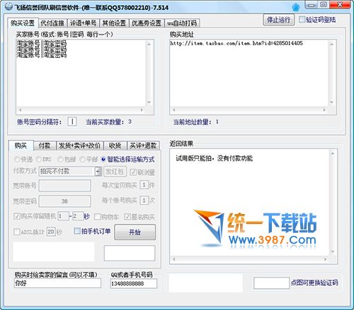 支持各种刷法,慢刷,快刷,均支持.支持时间间隔拍,可以很大的程度上躲过淘宝系统的监控。