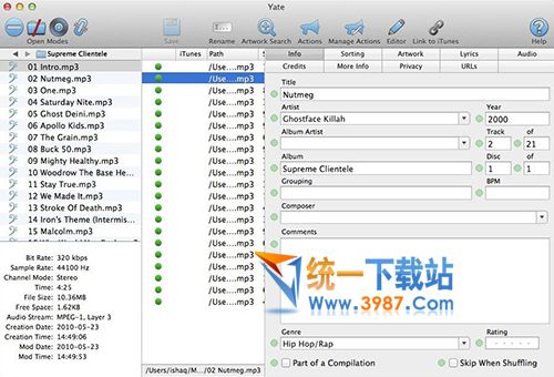 Yate被专为那些认真标记和组织他们的音频文件的人。应用程序是从地面 Mac 的用户设计的。它是一个 100%可可写应用程序,并使用自己的标记库。Yate将标签 mp3、 wav、 m4a、 flac、 aiff dsf 文件。