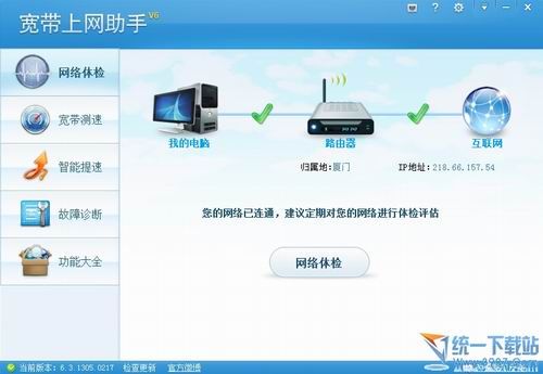 宽带上网助手可以为您提供电脑拨号故障处理、家庭网关无法上网故障处理和网速慢检测等常见的上网故障处理,同时对通过电脑进行的宽带连接拨号错误具有自动拦截告警并帮您处理故障的功能;同时您还能通过该软件快速、便捷的宽带连接创建和电脑网络配置;高效、简单的上网记录查询、宽带密码修改和常用网站推荐等自助服务;通俗易懂的用户教学;一目了然的宽带测速。