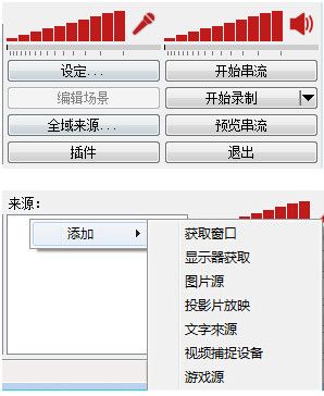 场景:场景相当于PS作图,场景是主图,来源是图层,你可以多设置几种不同的画面
