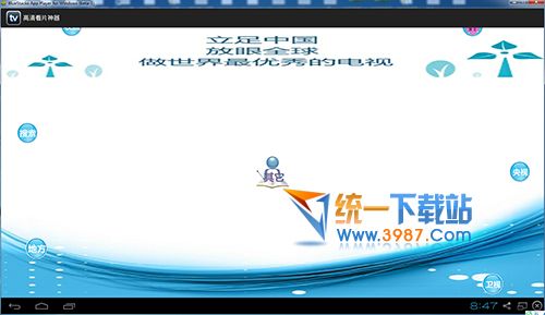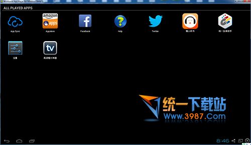 1、首先下载安卓模拟器,安装完毕后会自动进入软件界面,可以设置语言为简体中文