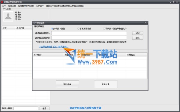 浩视达苹果恢复大师,可以恢复微信聊天记录,QQ聊天记录,陌陌聊天记录等等,其中文字记录较为容易恢复,图片,语音,视频等附件数据需要视扫描情况而定。