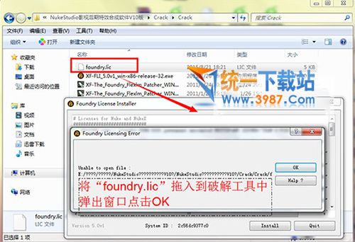 3、将Crack文件夹中的“foundry.lic”文件拖拽到破解工具中,弹出窗口点击OK。