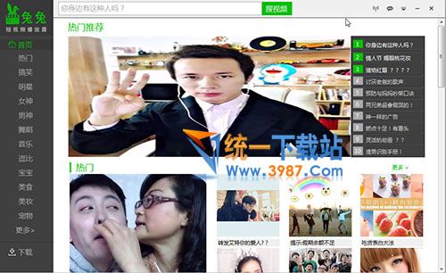 兔兔短视频播放器是一个专注于网络短视频的播放器,收集网络上热门的短视频,并整理分类,包括搞笑、音乐、宠物等等,总有一款适合你,能满足不同人群的观影需求;软件可搜索视频,可在线播放,也可将视频下载到电脑上,随时观看,欢迎大家下载使用。