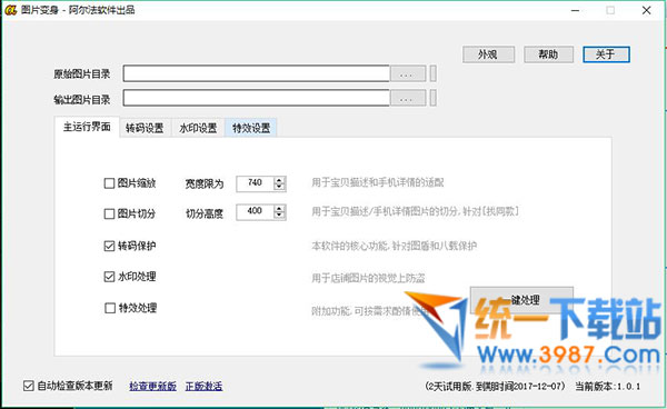 1、运行界面:图片缩放、图片切分、转码保护、水印处理、特效处理
