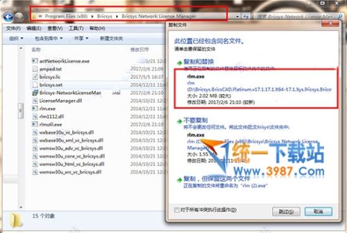 8、将AMPED目录下的所有文件复制到许可证安装目录下覆盖源文件,默认目录为C:\Program Files (x86)\Bricsys\Bricsys Network License Manager;