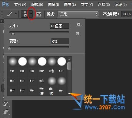 2、点击画笔工具后,在菜单栏的下方会出来画笔工具的状态。