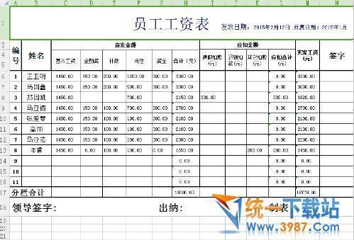 2017员工工资表模版,符合根据《关于工资总额组成的规定》的规定,工资总额由下列六个部分组成:计时工资计时工资、计件工资计件工资、奖金、津贴和补贴、加班加点工资、特殊情况下支付的工资,需要的朋友可以下载使用。