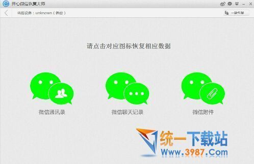 开心微信恢复大师是一款支持手机微信数据恢复的软件,它能够恢复机主手机里的微信聊天记录,包括文字、图片、语音,通通都能恢复,欢迎大家下载使用。