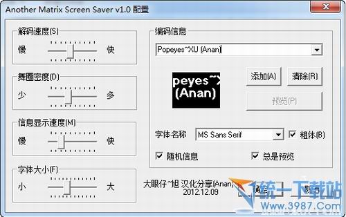 这是是一个可以实现黑客帝国矩阵效果的屏保,可以支持字母、数字和日文片假名字符。它使用方便,可以对代码的速度进行调整,也可以对代码的内容进行编辑。