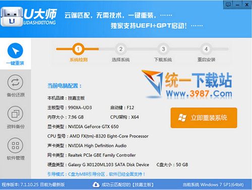 自动智能化检测当前电脑信息,自动分析当前电脑是否适合使用u大师重装,不强制安装,保证安装后系统的可用性。