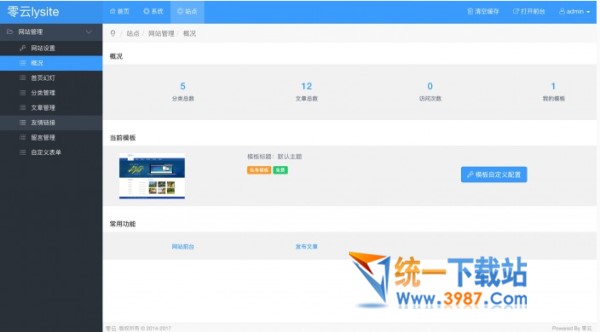 零云Lysite是一套基于开源通用后台衍生开发的通用建站系统,主要目标致力于打造一套建设企业官网和小型博客等站点的专用建站系统。